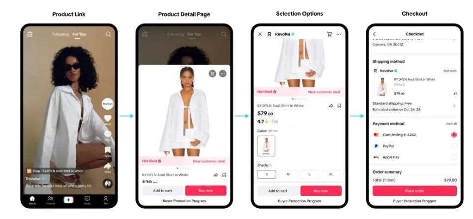 Diferente das lojas online tradicionais, o TikTok Shop permite que você venda diretamente através de vídeos, lives e uma vitrine integrada. Os consumidores podem descobrir, conhecer e comprar seus produtos sem sair do aplicativo, reduzindo drasticamente o atrito na jornada de compra.